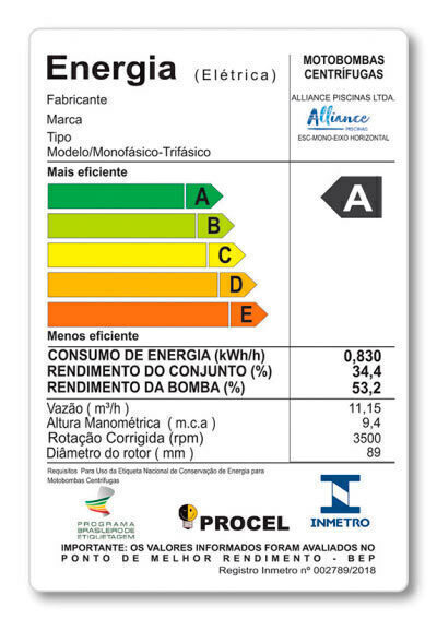 A certificação pelo INMETRO, constatou, garantindo a eficiência energética para todas nossas motobombas.